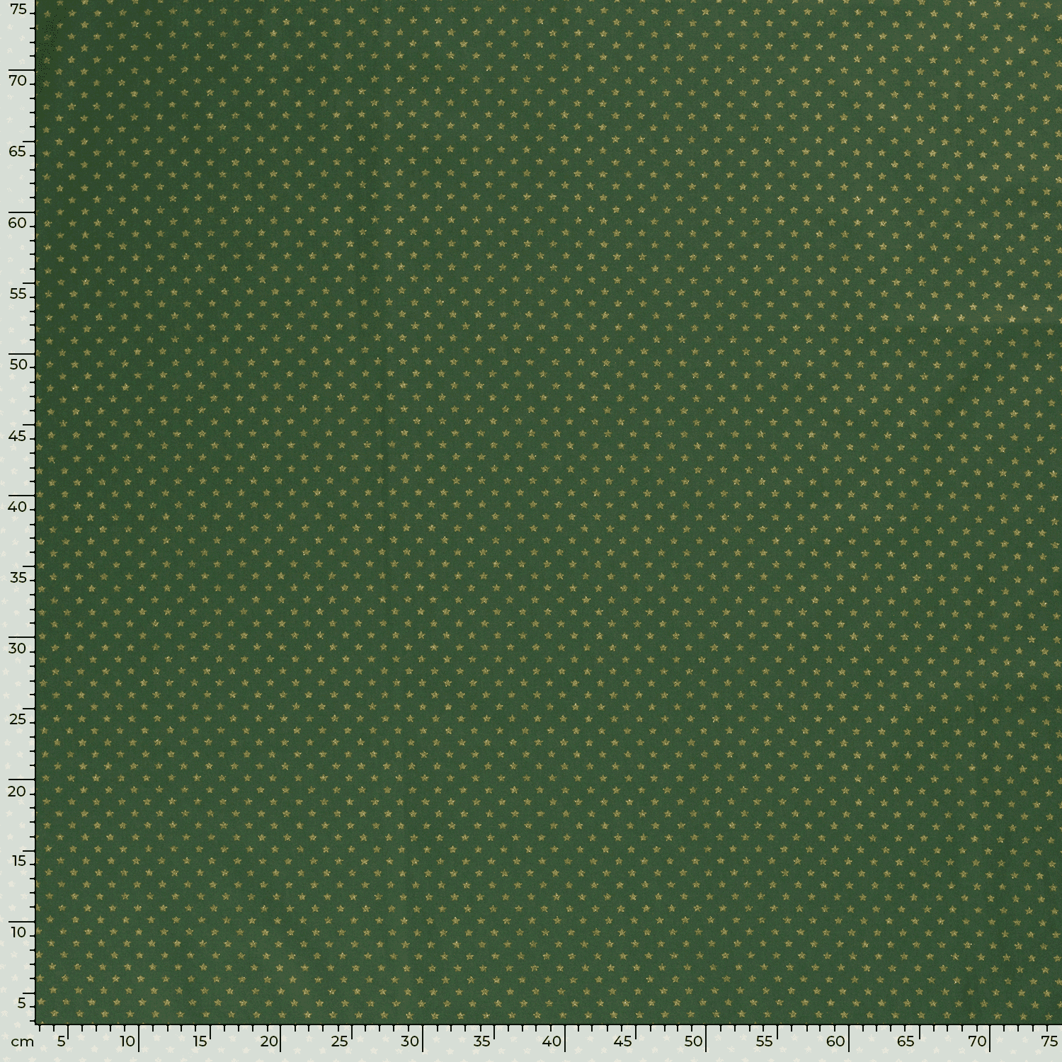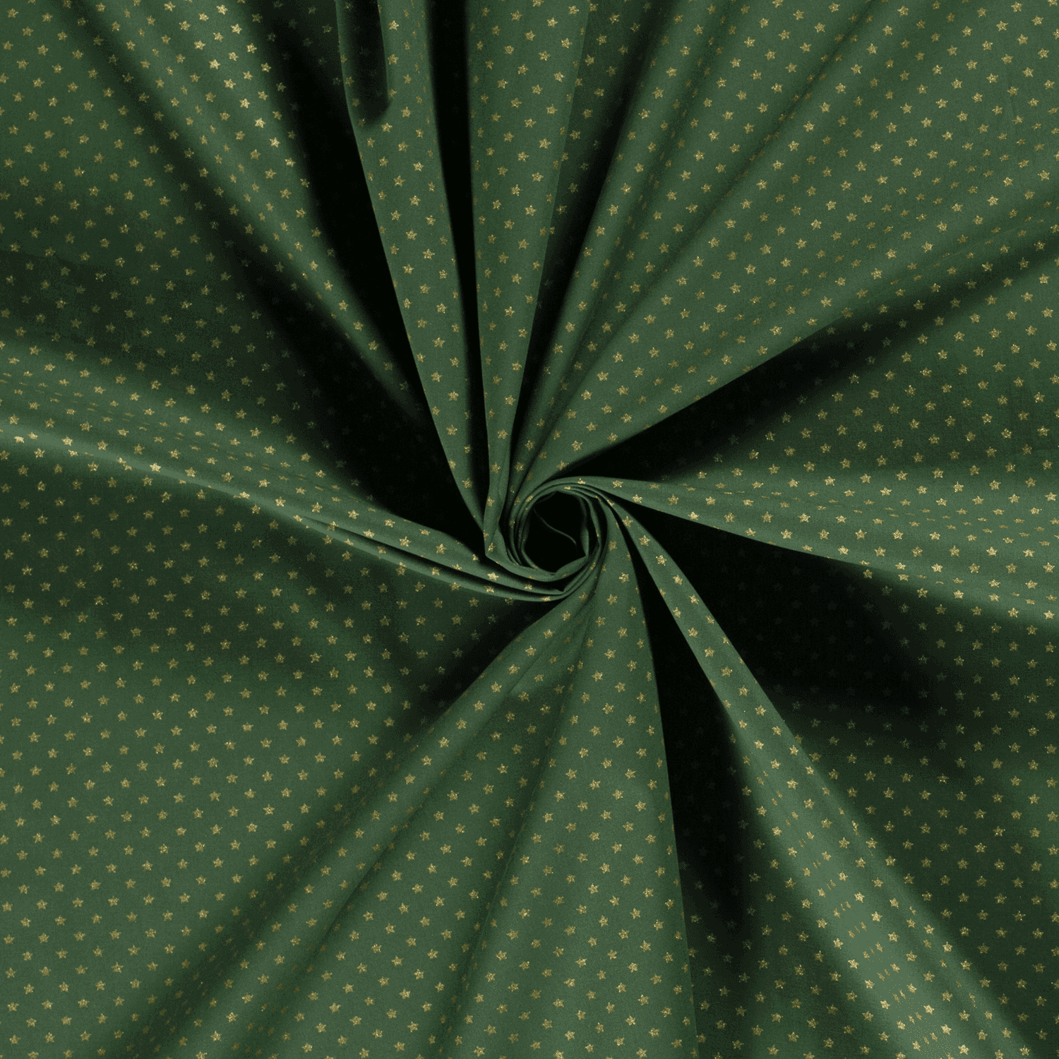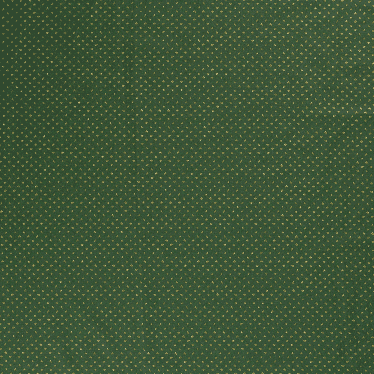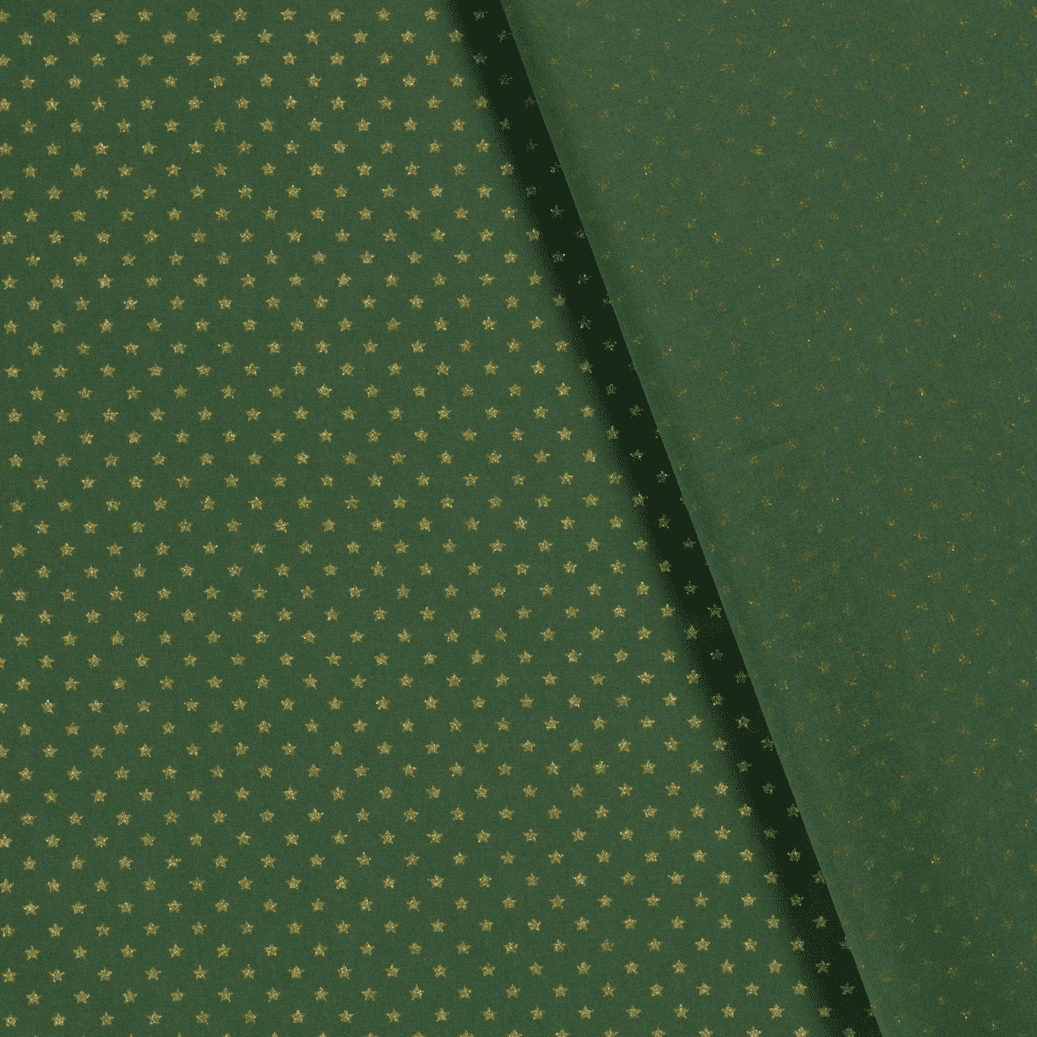 Baumwollstoff (Popeline) mit Sternen auf grün. Die goldenen Motiven sind glänzend mit Foliendruck.