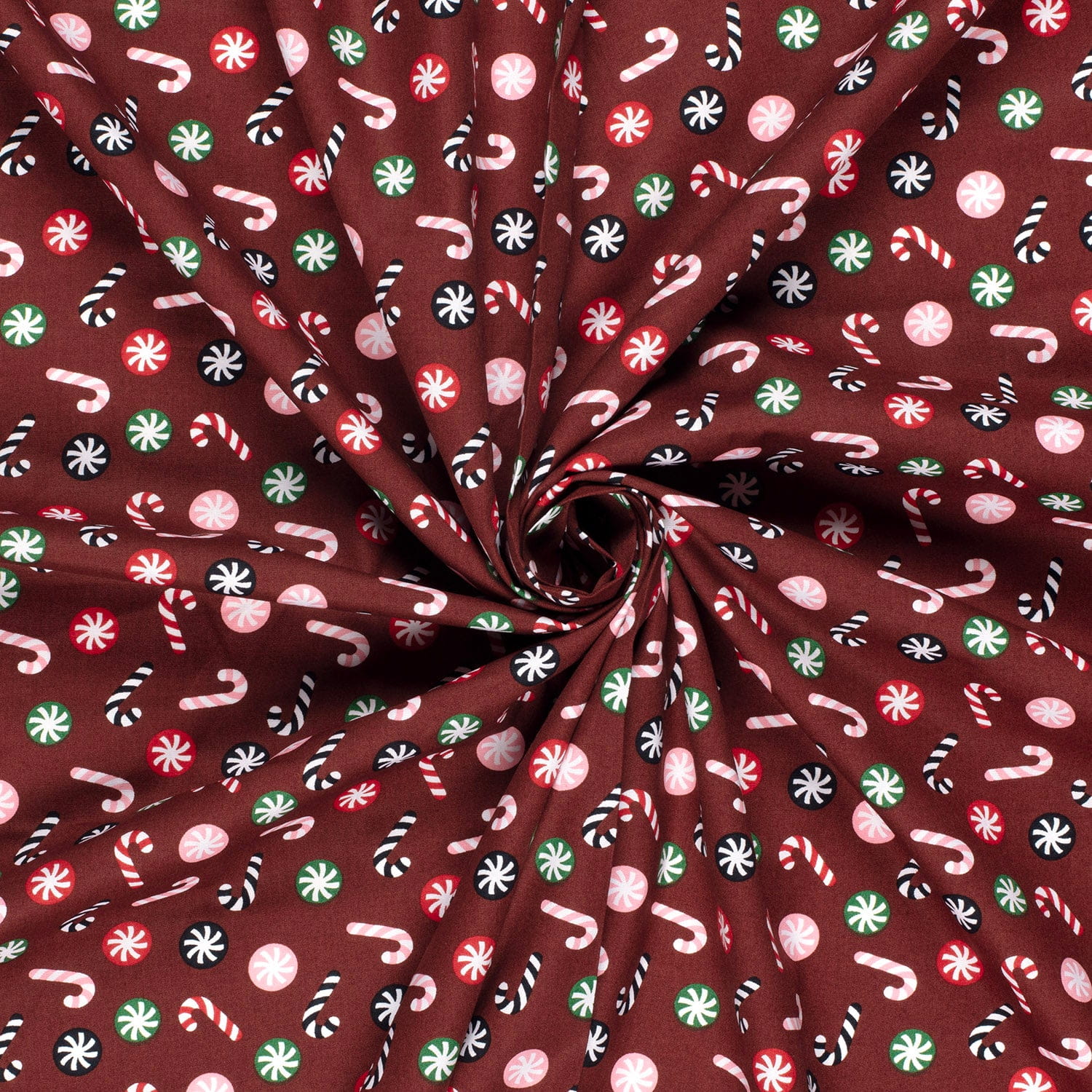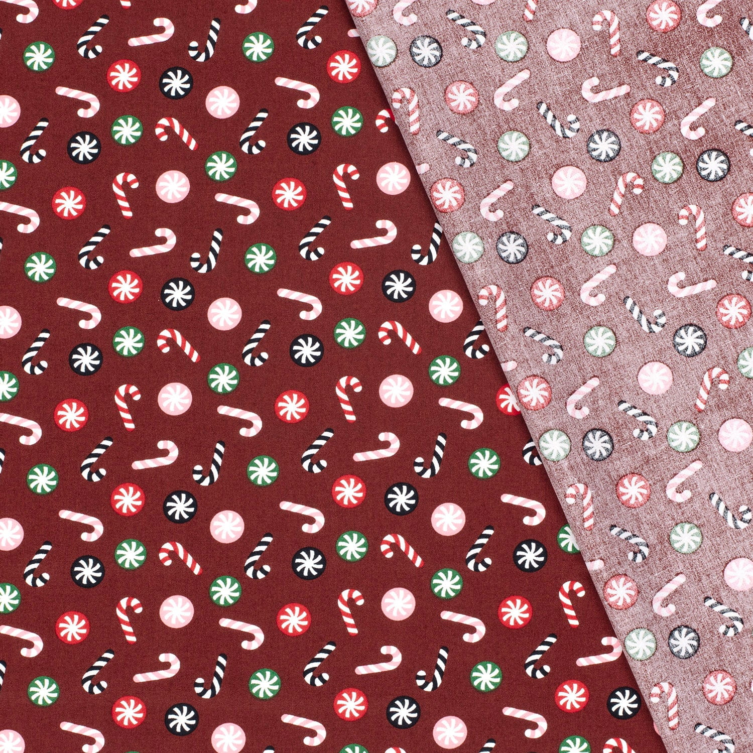 Produktinformationen "Baumwollstoff mit Zuckerstangen - weinrot"
