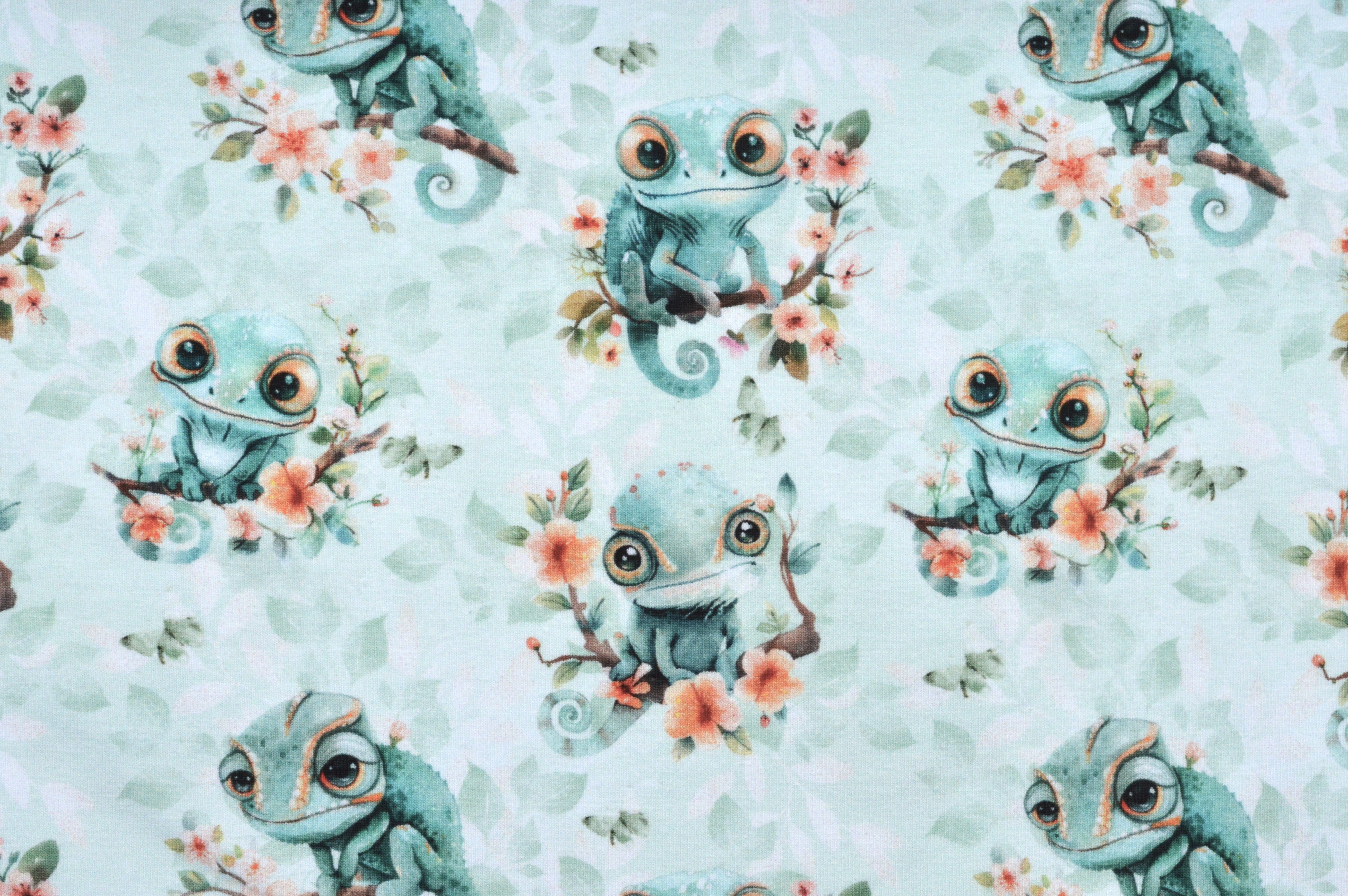 Produktinformationen "Digitaljersey Eigenproduktion mit "Carlo Chamäleon" das coole Chamäleon und Blüten - mintgrün"