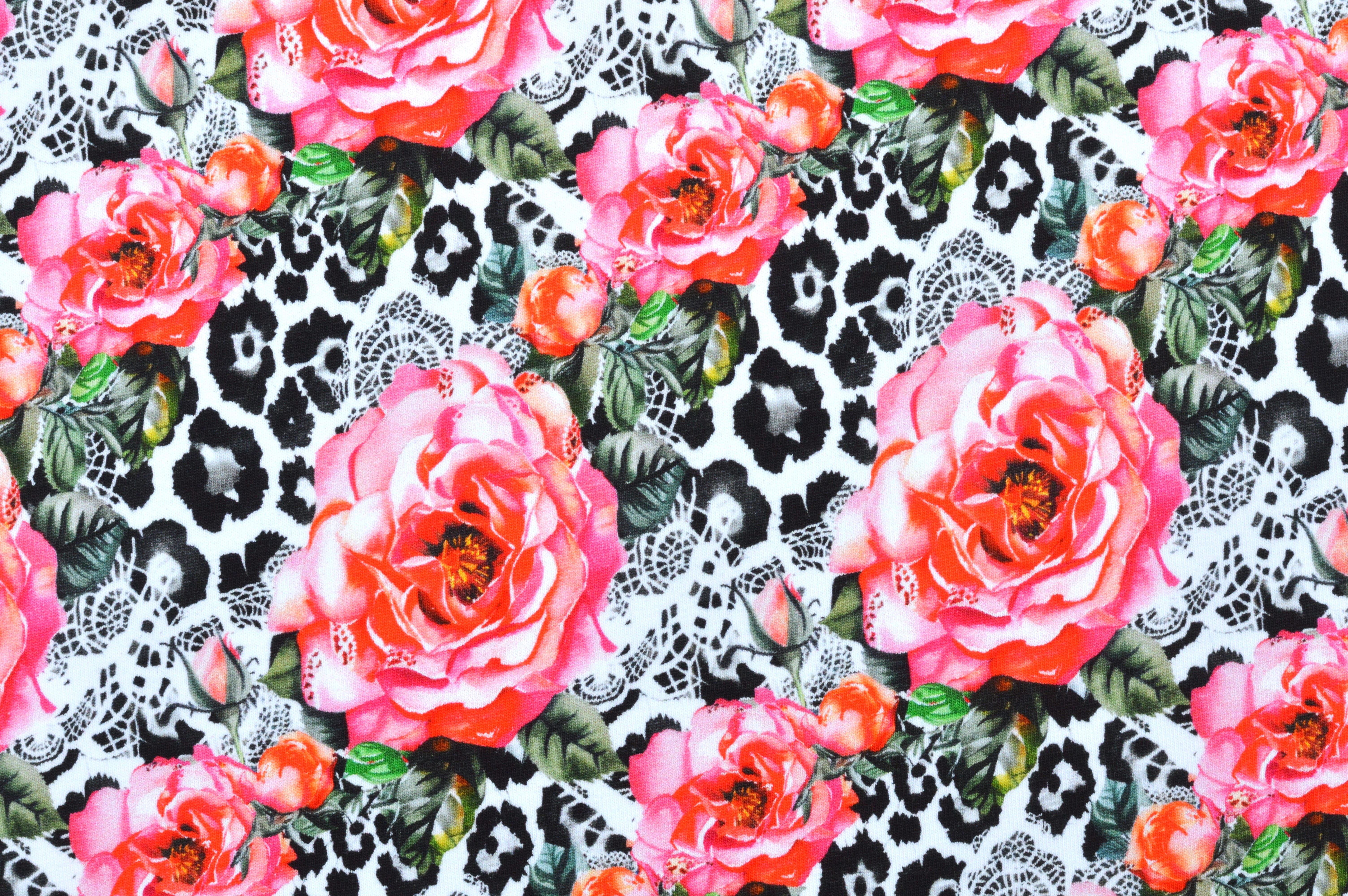 Produktinformationen "French Terry Digital Eigenproduktion mit Leo-Print und Rosen - weiß/schwarz"