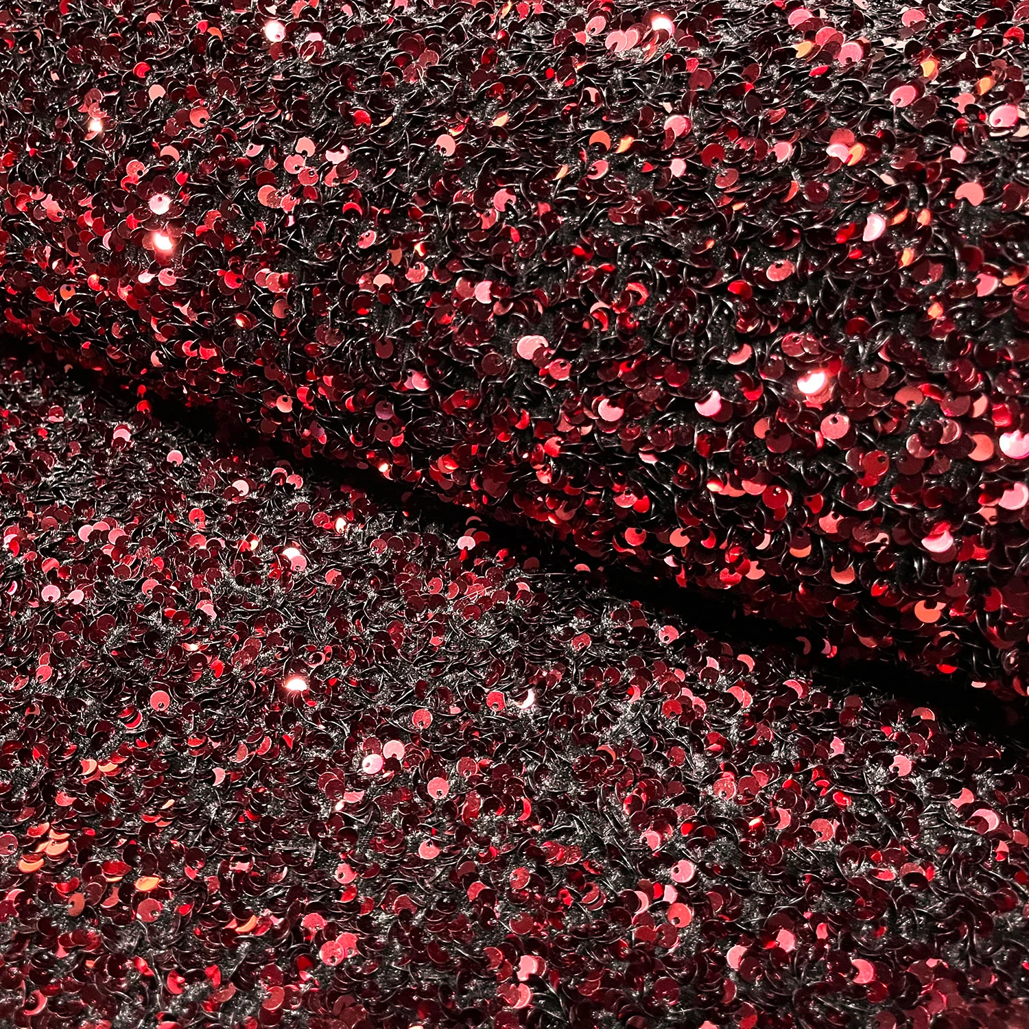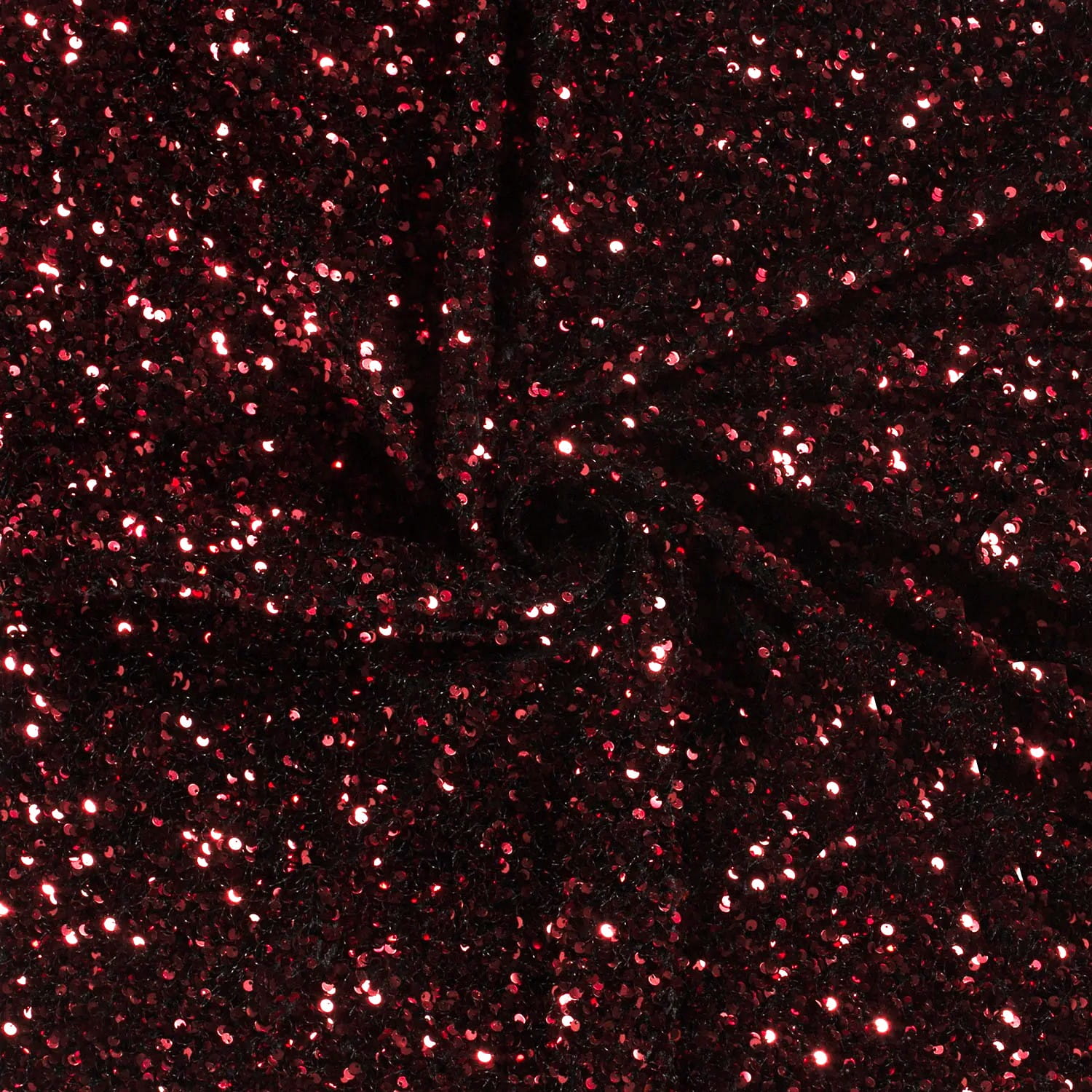 Samtstoff mit unzähligen Pailletten in uni dunkelrot (016).