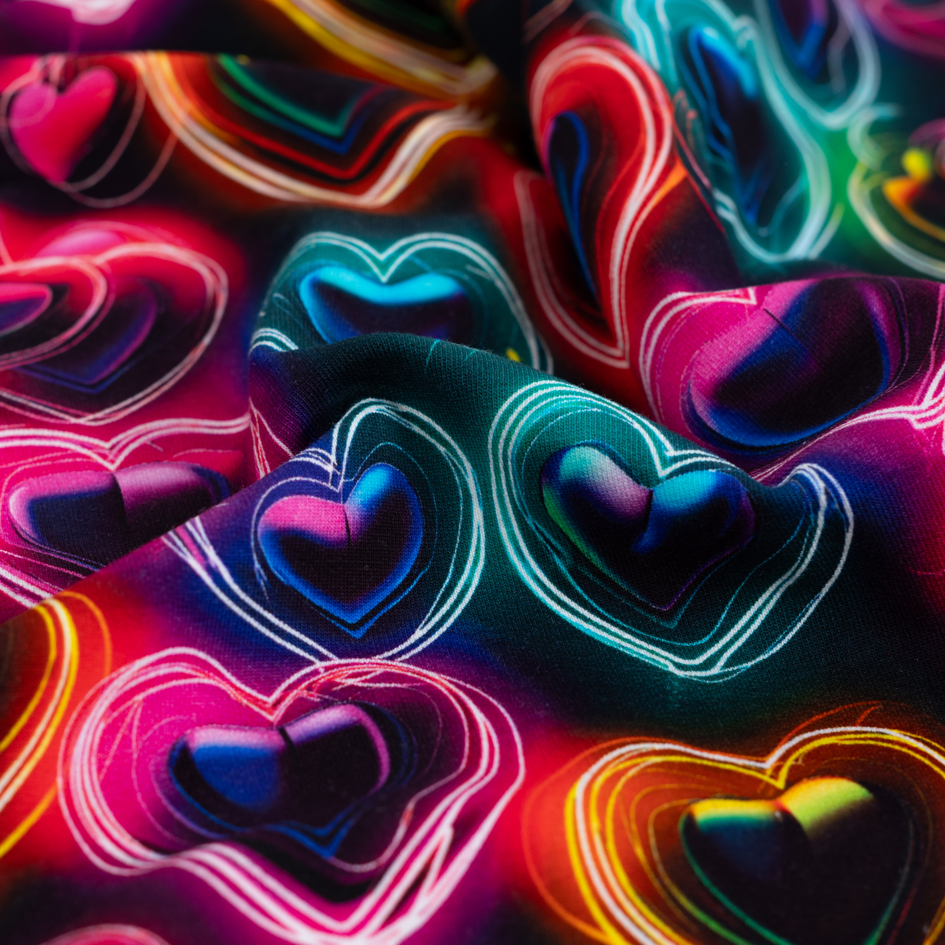 Produktinformationen "Sommersweat French Terry Digital "Love Lights" mit Herzen - schwarz"