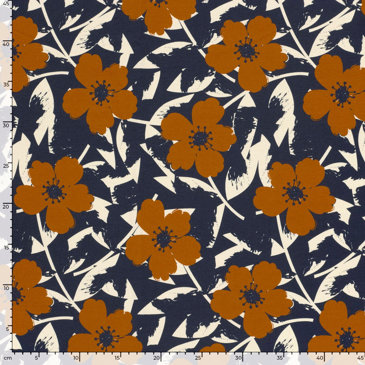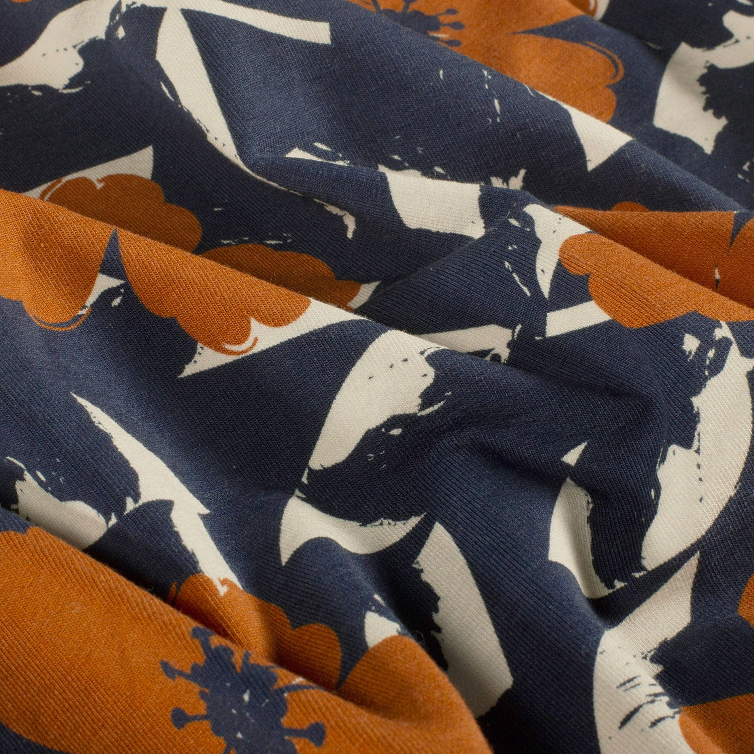 Produktinformationen "Sommersweat French Terry Digital "Midnight Petals" mt Blättern - marine (N008)"