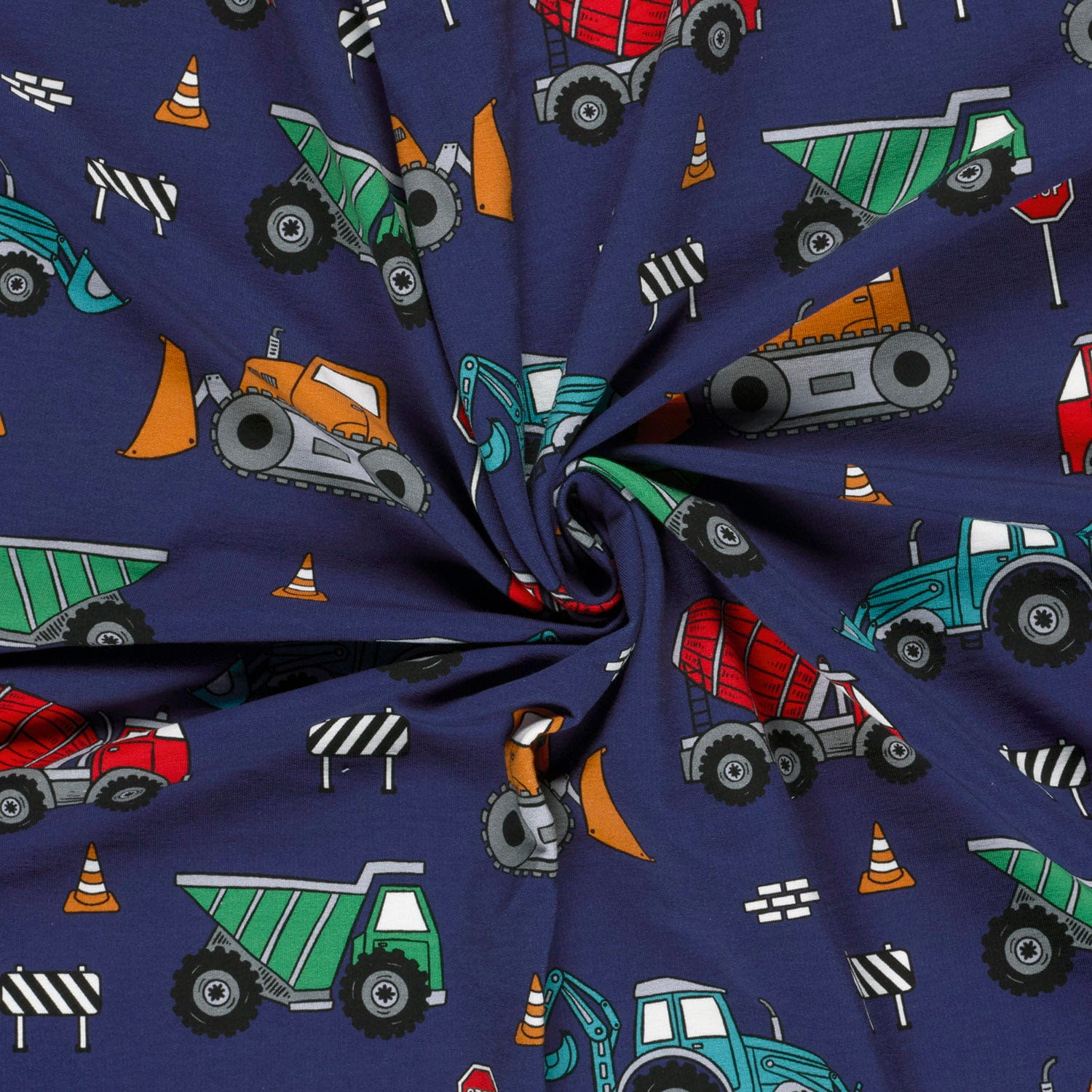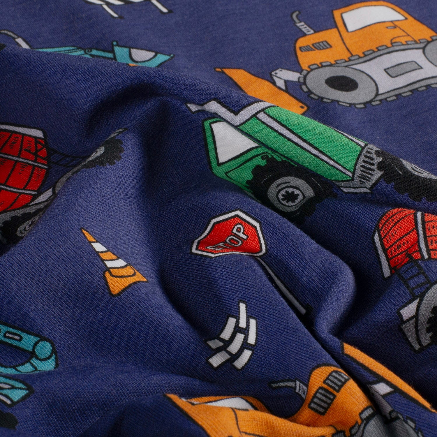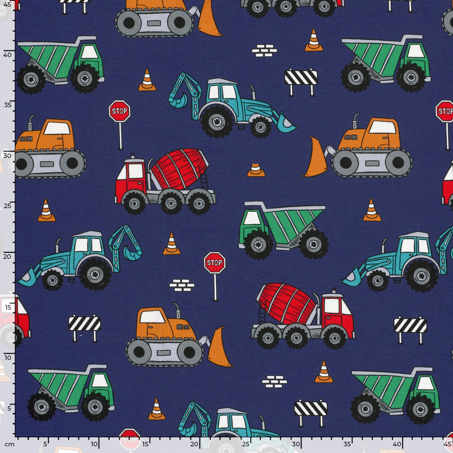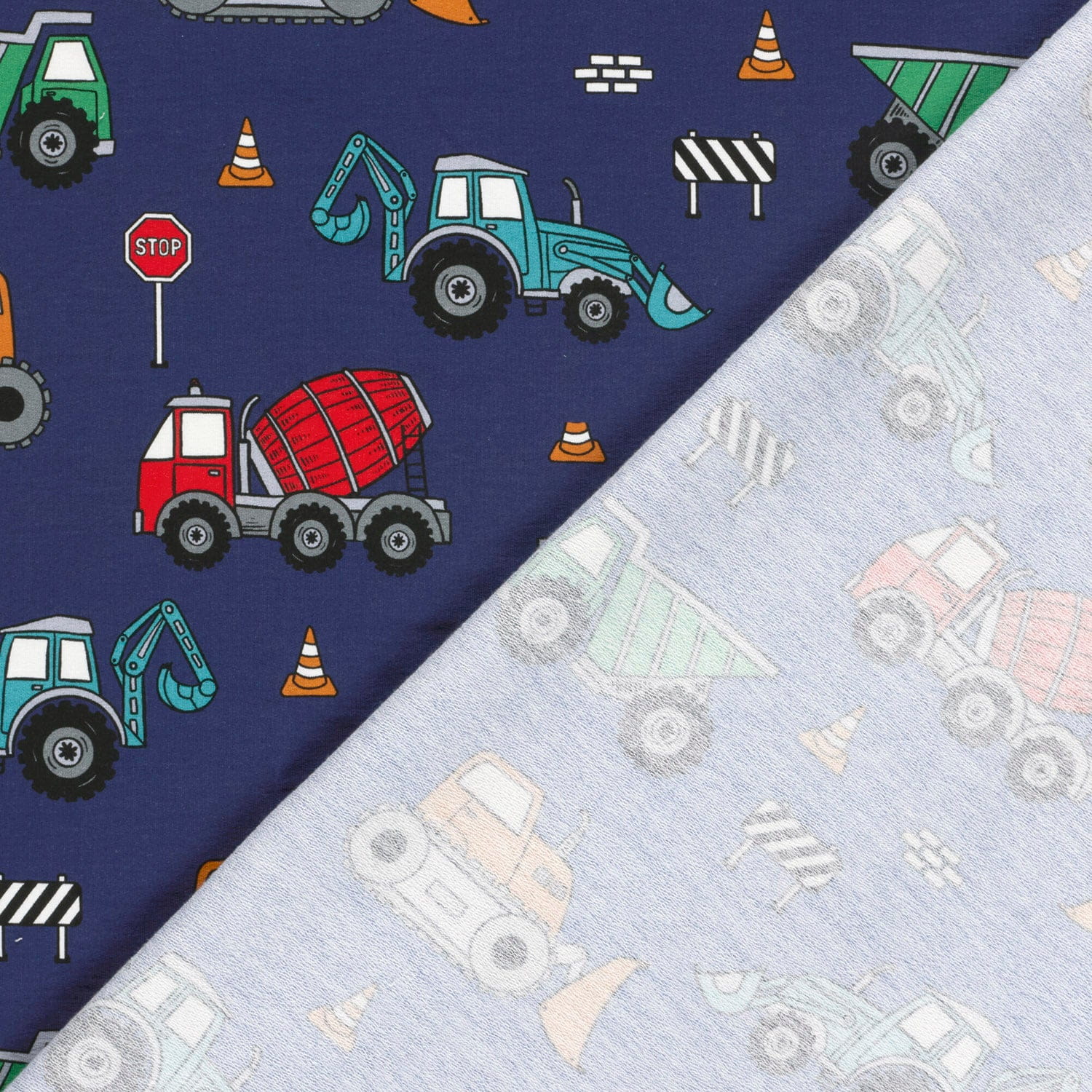 Produktinformationen "Sommersweat French Terry Digital mit Baustellenfahrzeugen - marine"